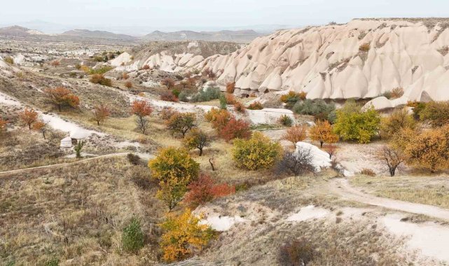 Dünyanın ve Türkiye'nin önemli turizm destinasyonları arasında yer alan ve UNESCO'nun Doğal ve Kültürel Miras Listesinde yer alan Kapadokya'da sonbahar mevsimiyle birlikte doğa adeta renk cümbüşüne büründü. Peribacalarının çevresini saran vadiler, sarı, kızıl ve kahverenginin en güzel tonlarıyla bezenirken, bölgeyi ziyaret eden yerli ve yabancı turistler kartpostallık manzaralar arasında unutulmaz anlar yaşıyor.