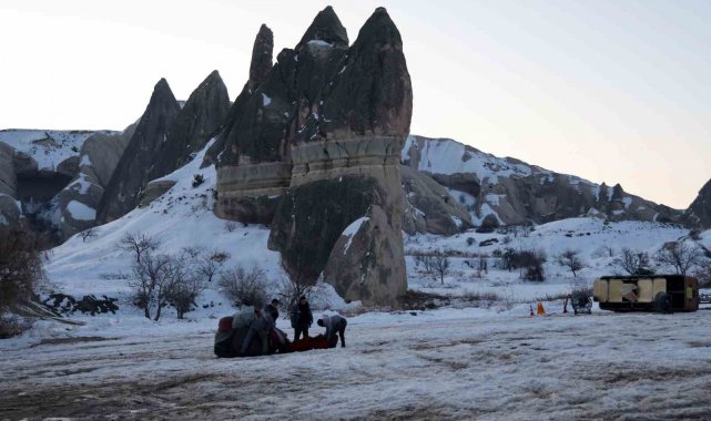Sabahın erken saatlerinde uçuş için hazırlanan sıcak hava balonları, uçuş iptalinden sonra tekrar toplandı. Uçmak ve balonları seyretmek için uçuş alanına gelen turistler de otellerine dönmek zorunda kaldı. UNESCO Dünya Doğal ve Kültürel Miras listesinde yer alan ve Türkiye'nin önemli kültür turizm merkezlerinden Kapadokya'da ortalama 250 gün yapılabilen uçuşlar mevsim şartlarına göre rüzgar, sis ve yağış nedeniyle zaman zaman gerçekleştirilemiyor. Kapadokya bölgesinde günlük 156 sıcak hava balonunun uçuşuna izin verilirken, yapılan uçuşlarda yaklaşık 3 bin 500 yerli ve yabancı turist Kapadokya bölgesini gökyüzünden izleme fırsatı buluyor. Sıcak hava balon uçuşları; Ulaştırma ve Altyapı Bakanlığına bağlı Sivil Havacılık Genel Müdürlüğü'ne bağlı Nevşehir Kapadokya Slot Merkezinin değerlendirmesi sonucu hava şartlarının elverişli olması durumunda verilen izinle yapılabiliyor. Sıcak Hava Balon Pilotu Tolga Eke yaptığı açıklamada; "Kapadokya bölgesinde bu gün de rüzgar nedeniyle Ne yazık ki Kapadokya bu gün hava şartları balon uçuşlarına izin vermedi. 14 gün balon uçuşları iptal edildi. Olumsuz hava şartlarından dolayı 14 gündür uçamıyoruz. Sivil havacılık genel müdürlüğü ilgili web sayfalarında raporları yayınladı. Bizde uçuşlarımızı iptal ettik. Halbuki uçuşlarımız için sabahın erken saatinde hazırlanmıştık. Tüm misafirlerimiz tekrar otellerine geri dönüyor" şeklinde konuştu. ABD'den gelen Dominikli Turist Florencei Teresa Moore Medina; "Sabah erken saatlerde bu güzel şöleni yaşamak için kalktık. Fakat uygun olmayan hava şartları nedeniyle uçamıyoruz. Buna rağmen Kapadokya'da bulunmaktan çok mutluyuz" dedi.