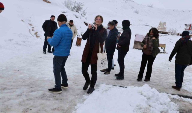 Turistler, Kapadokya'yı her mevsim güzel bulduklarını ancak kış aylarında oluşan manzaranın ayrı bir güzelliğe sahip olduğunu belirtti.