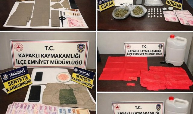 Tekirdağ'ın Kapaklı ilçesinde ocak ayı boyunca gerçekleştirilen polis operasyonlarında yüklü miktarda uyuşturucu madde, silah ve nakit para ele geçilirken, uyuşturucu madde suçundan yakalanan 14 şahıs tutuklandı.