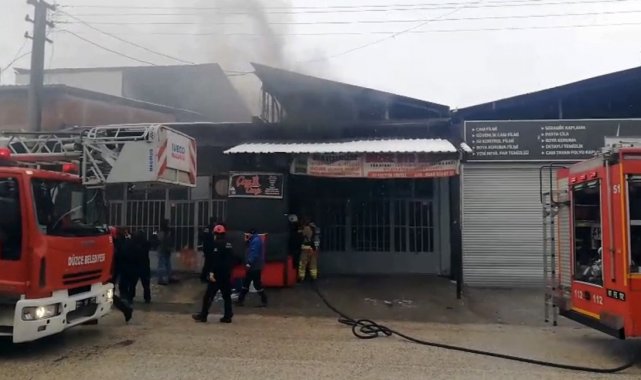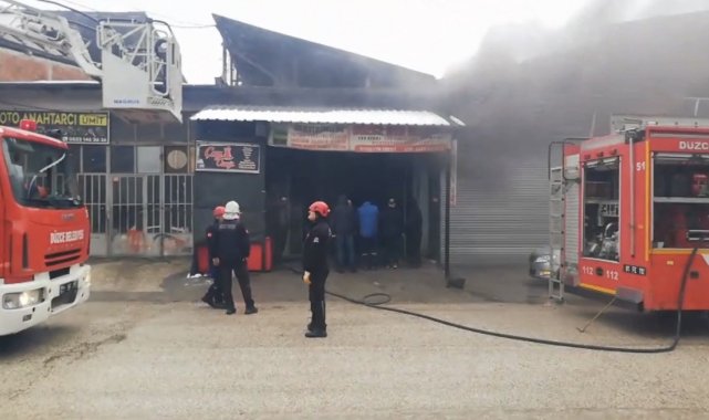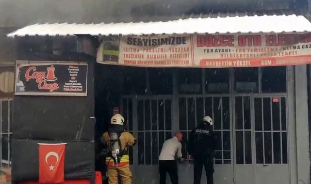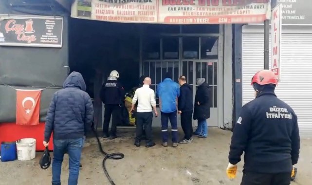 Düzce'de sanayi çarşısında kapalı dükkan içinden çıkan dumanları fark edip itfaiyeyi arayan bir kişi, dükkandaki yangının kısa sürede söndürülmesini sağlayarak diğer dükkanların da yanmasını engelledi.