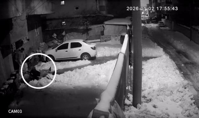 İlçede 2 gün önce başlayan ve kısa sürede etkisini artıran kar yağışı sonrası bir evin önünde kaydedilen görüntüler, sosyal medyada da ilgi gördü. Güvenlik kamerasına yansıyan kayıtlarda, evden dışarı çıkan hane sakinlerinin buz tutan zeminde adım atar atmaz kayarak yere düştüğü anlar yer aldı. Görüntülerde aynı evden çıkan kişilerin peş peşe aynı noktada kayıp düşmesi dikkat çekerken, düşenlerin herhangi bir ciddi yaralanma yaşamadan yeniden ayağa kalktıkları görüldü.