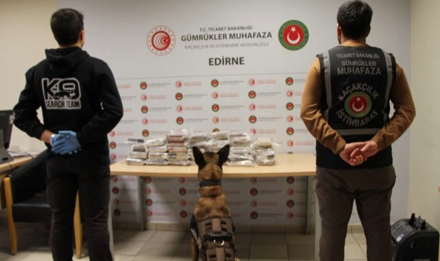 Edirne Kapıkule Gümrük Muhafaza ekipleri yurda giriş yapmak üzere gümrük sahasına gelen kapalı kasa kamyoneti risk analizleri için X-Ray taramasına sevk etti. Araçta şüpheli yoğunluk tespiti üzerine narkotik köpeği "Alfa" ile yapılan detaylı aramada, sürücü ve ön yolcu koltuğu arkasındaki döşemedeki gizli bölmede, çok sayıda şeffaf vakumlu poşette 36 kilo 180 gram kokain ele geçirildi.