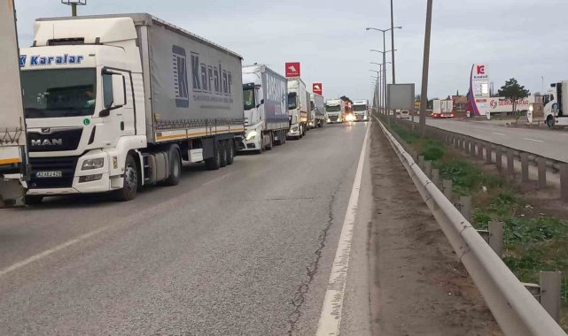 İhracat yüklerini, teslim edecekleri adreslere yetiştirmek için yola çıkan tır sürücüleri, bekleme yaptıkları tır parklarında cep telefonlarına gelen mesaj işe birden çıkış yapınca yollar tırlar ile doldu.