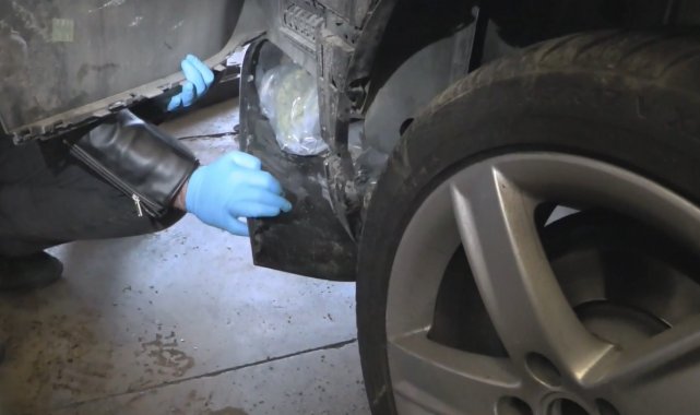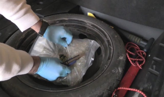 Narkotik Dedektör Köpekleri "Füge" ve "Bodri"nin katılımıyla yapılan aramada, köpeklerin koltuk altları ve motor bölümüne tepki vermesi üzerine araçta özel olarak hazırlanmış gizli bölmeler tespit edildi. Yapılan kontrollerde, özel tertibatlı düzenek içerisinde 68 adet şeffaf vakumlu poşet içinde toplam 22 kilo 662 gram esrar ele geçirildi.