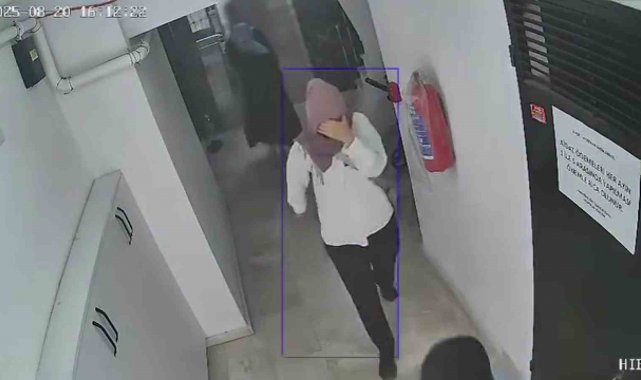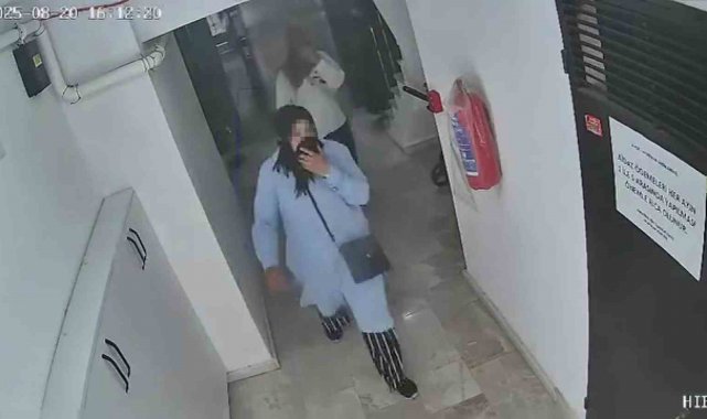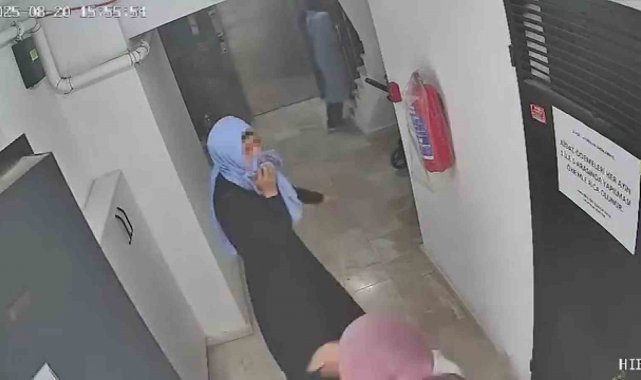 Görüntülerde kadınların önce kapıyı tıklatmaları, kapıda nöbet tutmaları ve kamerayı fark ettikleri anda telaşları net bir şekilde yer aldı.