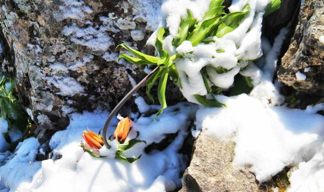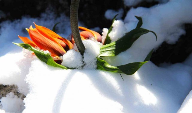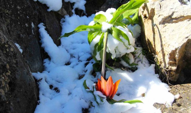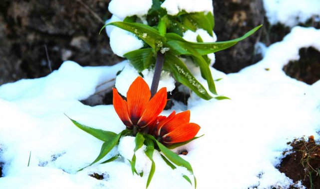 Kahramanmaraş'ta önceki gün etkili olan kar yağışı ile birlikte baharın müjdecisi olan ters laleler de kar altında kaldı.
