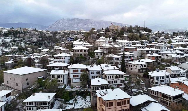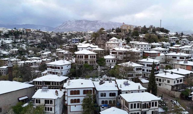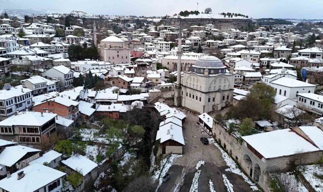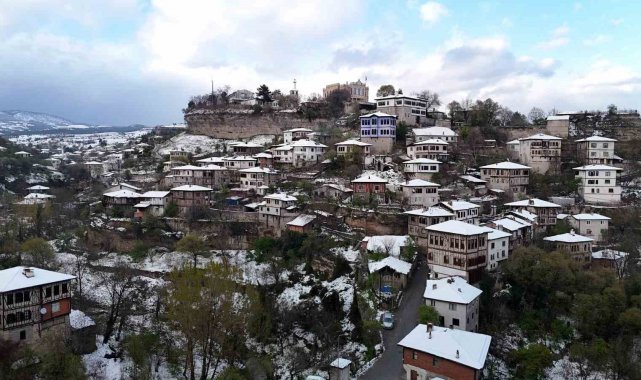 Karabük'ün UNESCO Dünya Mirası Listesi'nde yer alan Safranbolu ilçesi, kar yağışının ardından adeta beyaz bir gelinliğe büründü. İlçede kar yağışı sonrası güneşin yüzünü göstermesiyle birlikte her biri geçmişin sessiz tanığı olan tarihi evlerin üzerindeki kar tabakası parıldarken, kuş sesleriyle birlikte ortaya insanı mest eden görüntüler çıktı.