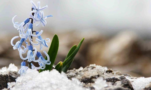 Kar altından çıkan kaya sümbülü görsel şölen sunuyor