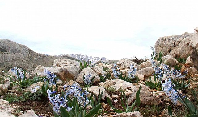 Kahramanmaraş'ın Afşin ilçesinin dağlık bölgelerinde yetişen kaya sümbülü, baharın gelişiyle birlikte görsel şölen sunuyor.