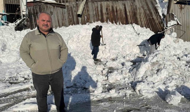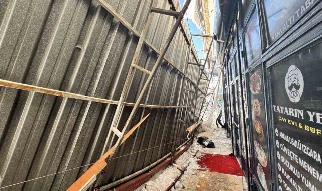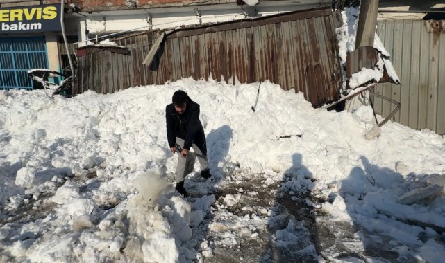 Çökme sonucu maddi hasar oluşurken diğer esnaflarda çatılardaki kar birikintilerini temizlemek için çalışma başlattı.