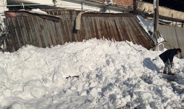 Kar birikintileri iş yerlerinin sundurmalarını çökertti