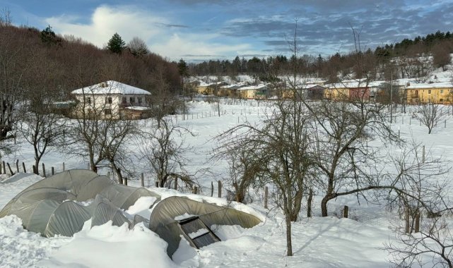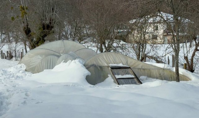 Bartın'ın Ulus ilçesinde etkili olan yoğun kar yağışı nedeniyle çöken iki sera zarar gördü.
