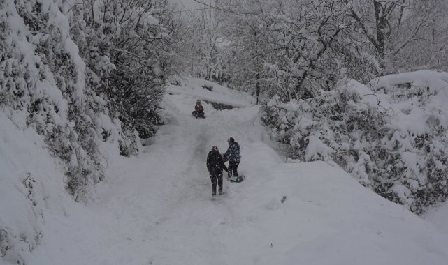 Kocaeli'nin yüksek kesimlerinde etkili olan kar yağışı, özellikle Kartepe'nin kırsal bölgelerini beyaza bürüdü. Çocuklar poşetlerle kayarak karın keyfini çıkarırken, lapa lapa yağan karda altın gününe gitmek için yürüyen kadınlar ise yüzlerde tebessüm oluşturdu.