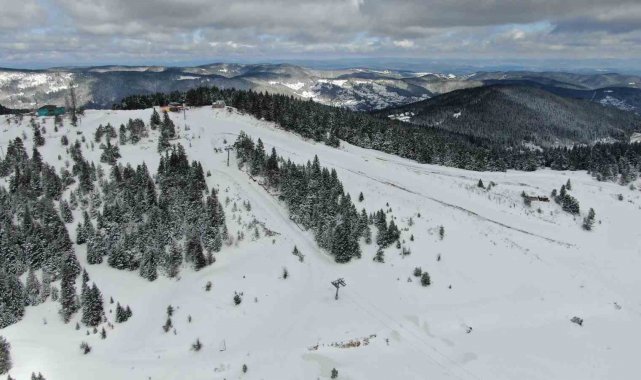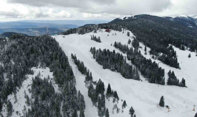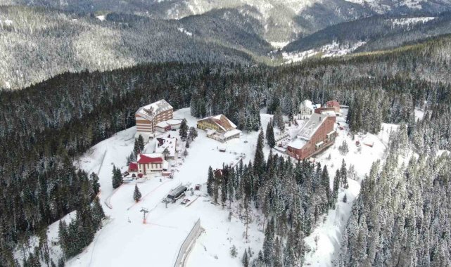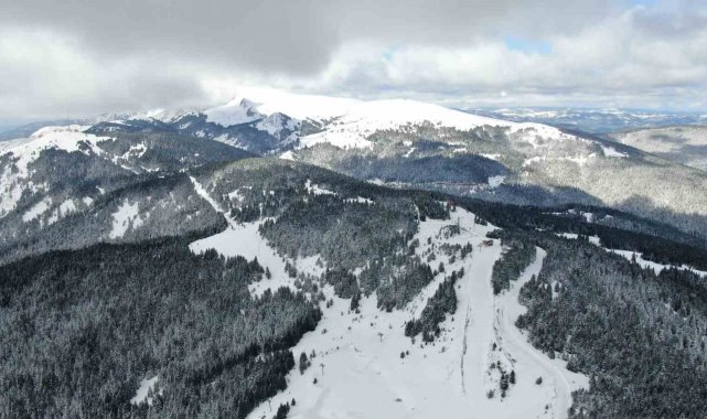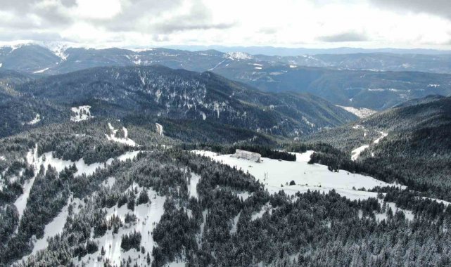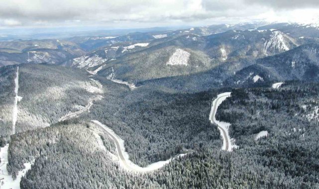 Meteoroloji Müdürlüğü'nün soğuk hava tahmininde bulunduğu Kastamonu'da dün yüksek kesimlerde kar yağışı etkili oldu. Kastamonu ve Çankırı sınırlarında yer alan Ilgaz Dağı Milli Parkı'nda da kar yağışı ara ara etkili olmaya devam ediyor. Kar yağışı sonrasında Ilgaz Dağı beyaz örtüyle kaplandı. Sabah saatlerinde güneşin yüzünü göstermesiyle birlikte Ilgaz Dağı'nın zirvesi ve ormanlık alanlarda kışı aratmayan manzaralar ortaya çıktı. Görsel şölen sunan Ilgaz Dağı, havadan görüntülendi.