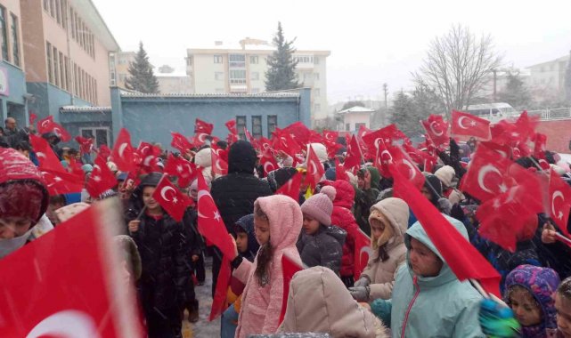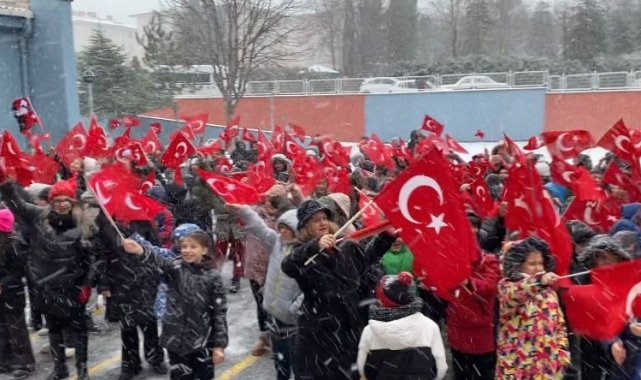 Yoğun kar yağışı altında öğrenciler, okul bahçesinde Türk bayraklarıyla "Parla" şarkısını hep bir ağızdan söyledi. Soğuk havaya rağmen yaşanan coşku izleyenlere duygu dolu anlar yaşattı.