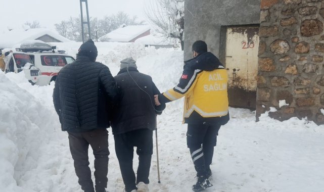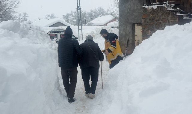 Kar kalınlığının 145 santimetreyi aştığı Tunceli'nin Ovacık ilçesinde rahatsızlanan 87 yaşındaki hasta, ekiplerin yaklaşık 2 saatlik çalışmasıyla hastaneye ulaştırıldı.
