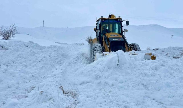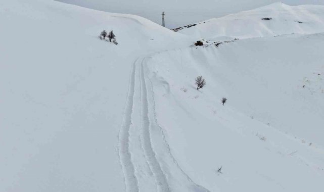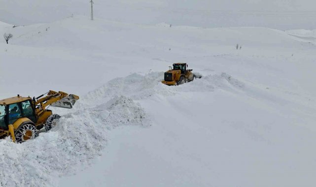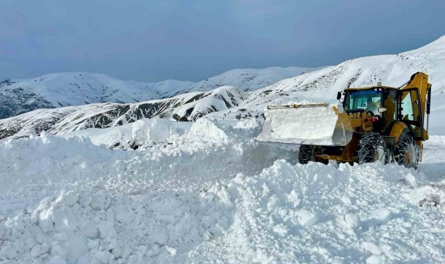 Kar kalınlığının yer yer 2 metreyi bulduğu bölgede yol açma çalışması