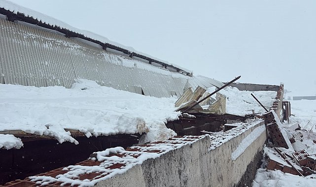 Kar nedeni ile ahırın çatısı çöktü, 11 hayvan telef oldu