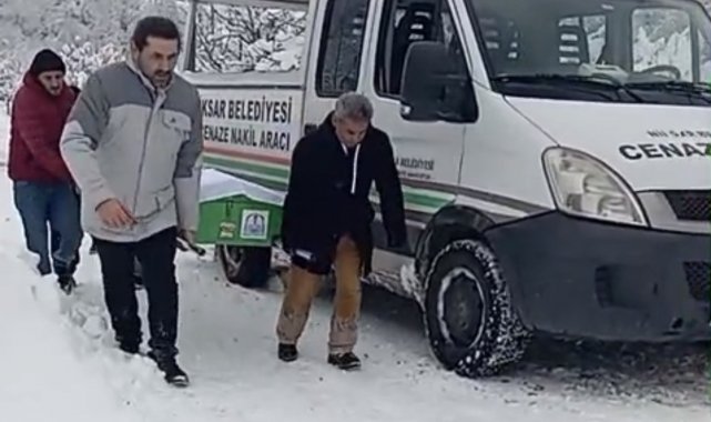 Kar nedeniyle yol kapandı, cenaze iş makinesiyle taşındı