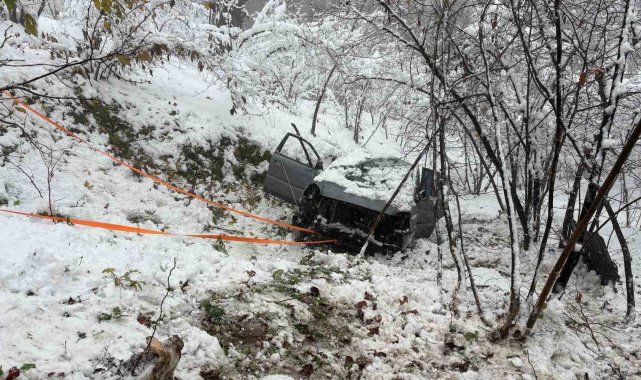 Kar sebebiyle kayganlaşan yolda kontrolden çıkan otomobil şarampole devrildi: 3 yaralı