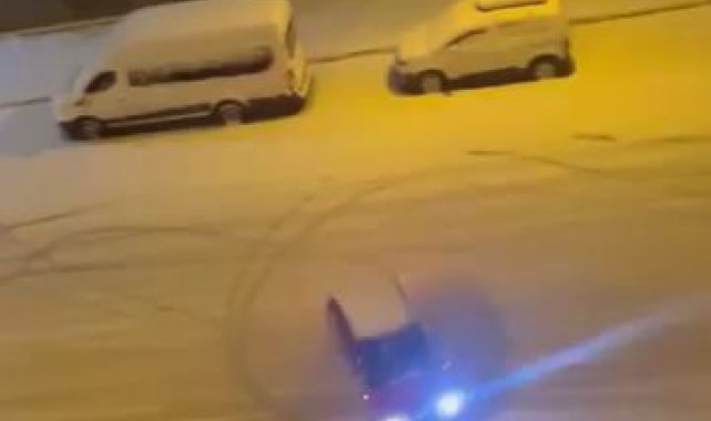 Diyarbakır'ın Kayapınar ilçesinde bir otomobil, kar üstüne kayıp drift attı. O anlar cep telefonu kamerasına yansıdı.