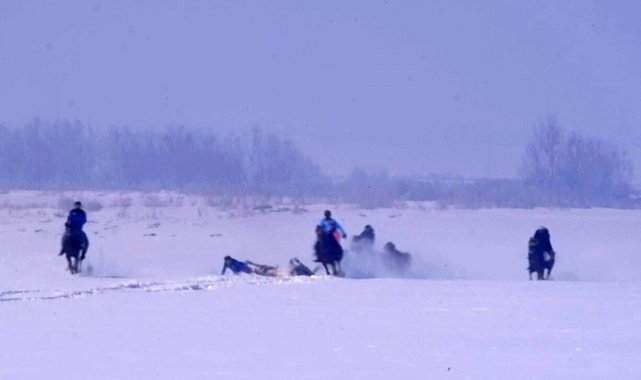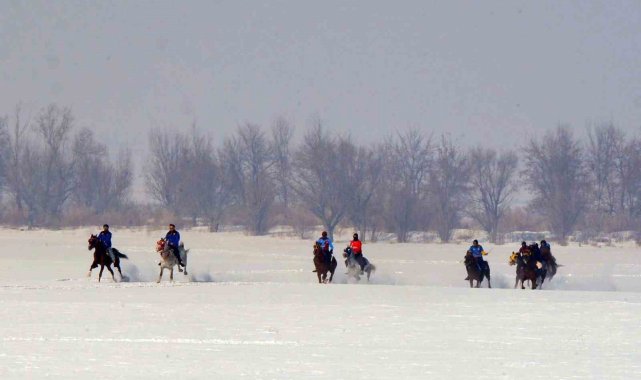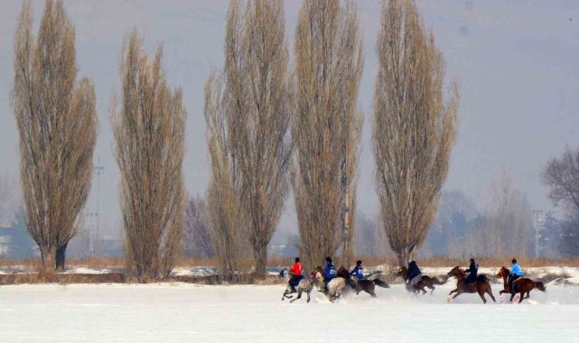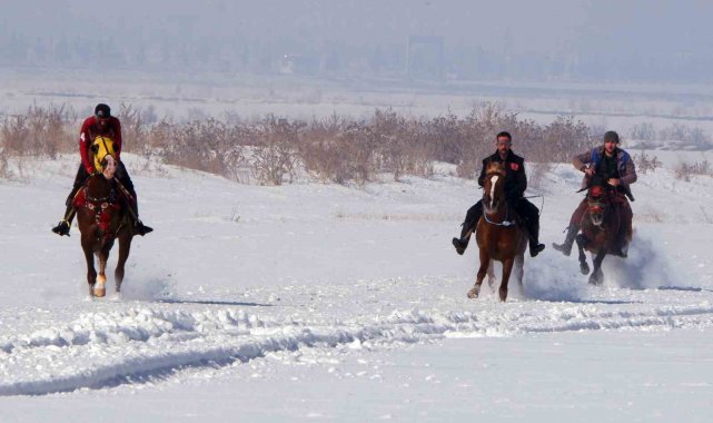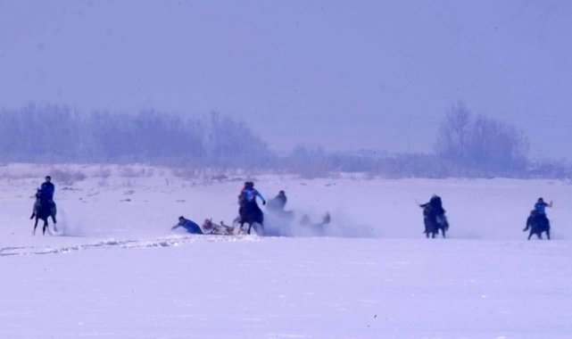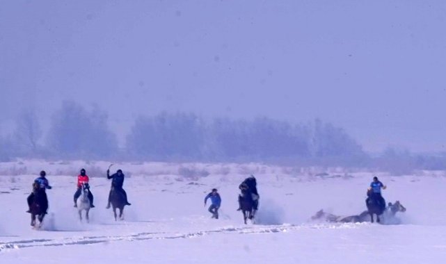 12 at ve sporcunun katılımıyla kar üstünde gerçekleşen "Mahalli At Yarışı" nefes kesen anlara sahne oldu. Soğuk havaya rağmen çok sayıda vatandaşın izlediği yarışlara katılan atlar ve sporcular bin 800 metrelik karla kaplı zorlu parkuru tamamlamaya çalıştı.