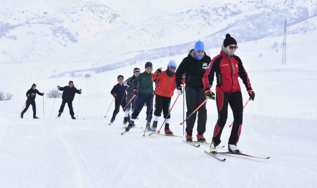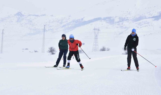 Bitlis'te kayaklı koşu sporcuları, dondurucu soğuk havaya rağmen antrenmanlarını aralıksız sürdürüyor.