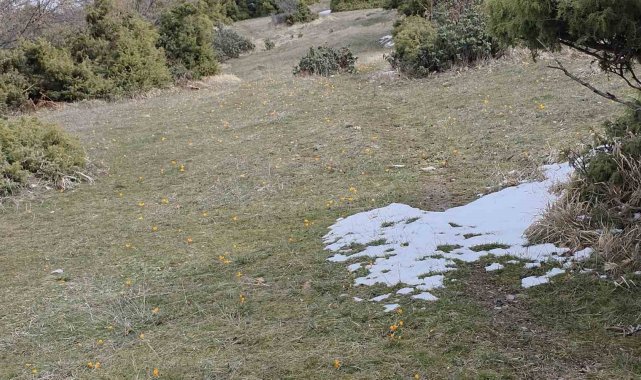 Kütahya'nın Radar bölgesinde kar ve çiğdemlerin aynı karede görüntülenmesi, ilginç manzaralar oluşturdu.