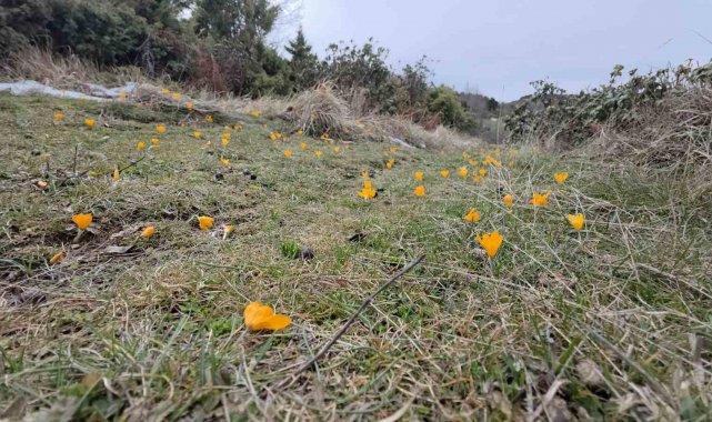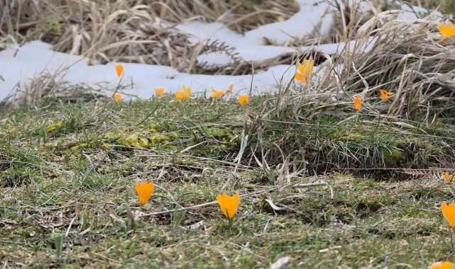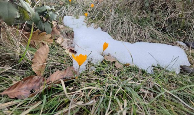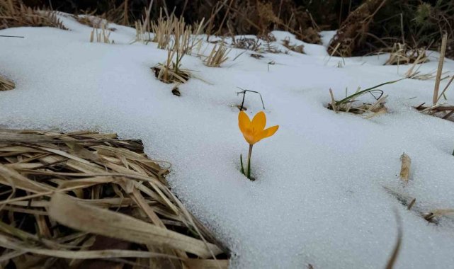 Erken açan çiğdem çiçeklerinin kar altında kaldığını belirten Süleyman Suna, "Mevsimini şaşıran ve çiçek açan çiğdemlerin üzerine kar yağdı. Sarı rengin oluşturduğu görüntü ise adeta ilginç manzaralar ortaya çıkardı" dedi.