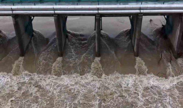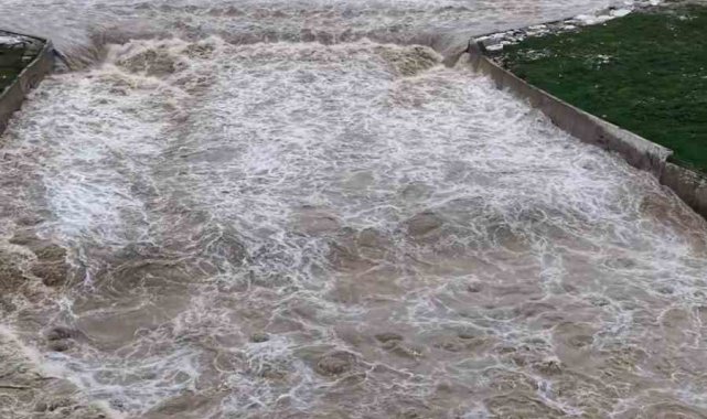 Dronla kaydedilen görüntülerde, çaydaki su seviyesinin normalin üzerine çıktığı ve akış hızının belirgin şekilde arttığı görüldü.
