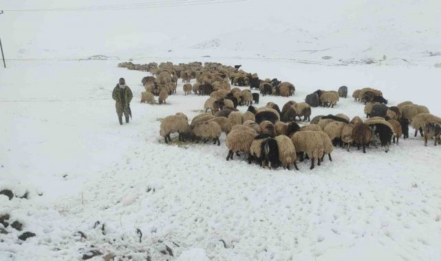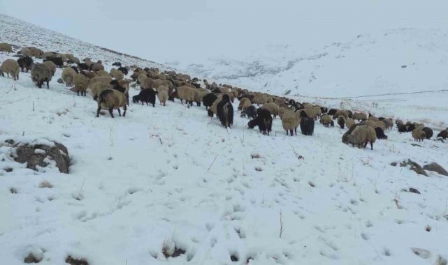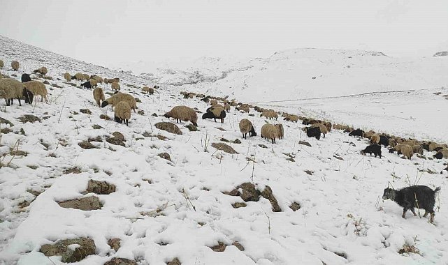 Kar yağdı, koyun sürüsü yaylada kaldı