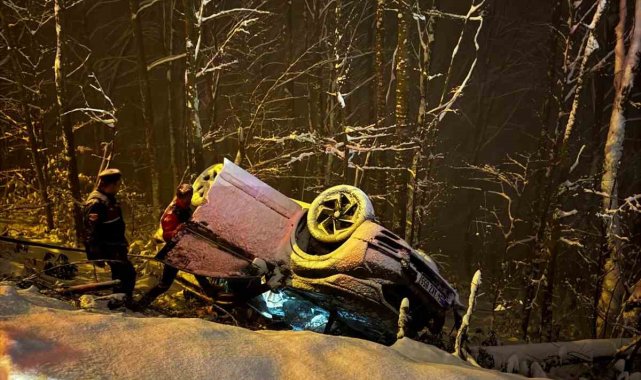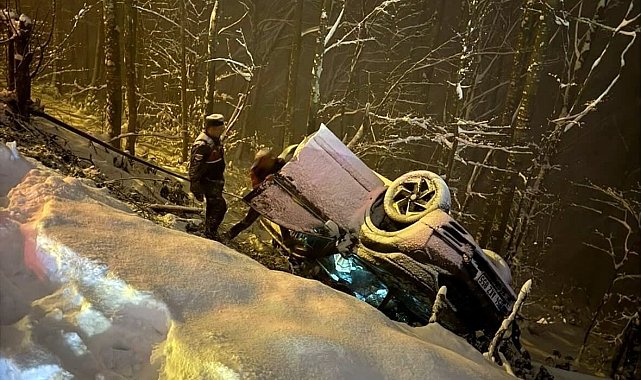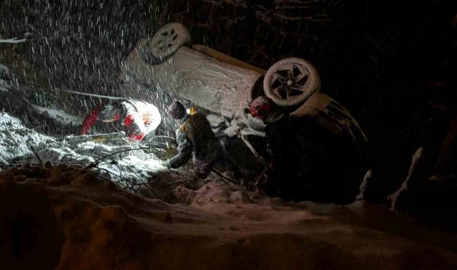 Kar yağışı kazayı beraberinde getirdi: Cip şarampole yuvarlandı, 3 kişi yaralandı