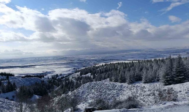 Eskişehir'in yüksek kesimlerinde etkili olan kar, çevreyi beyaza bürürken, Bektaşpınar yolunda eşsiz manzaralar ortaya çıkardı. Karla kaplanan doğa, adeta kartpostallık görüntüler oluşturdu.