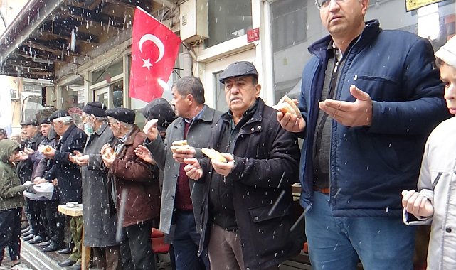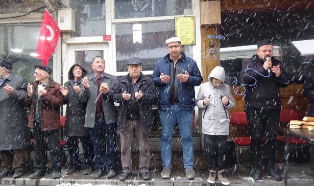 Bolu'nun Mudurnu ilçesinde yaklaşık 7 asırdır her cuma yapılan esnaf duası geleneği, bu kez kar yağışı altında gerçekleşti.
