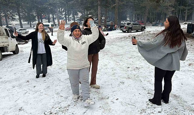 Balıkesir'in Edremit ilçesinde Kazdağları'nın Hanlar mevkiine yağan kar, pazar tatili ve sömestir tatiliyle birleşince uzun süredir şehir merkezinde kar yağışı görmeyen Edremitliler, karın tadını göbek atarak çıkarttılar.