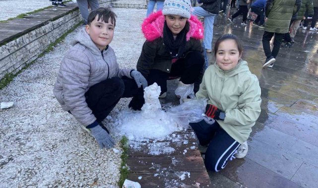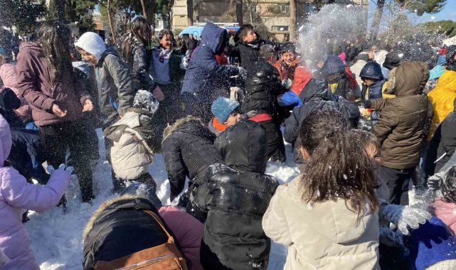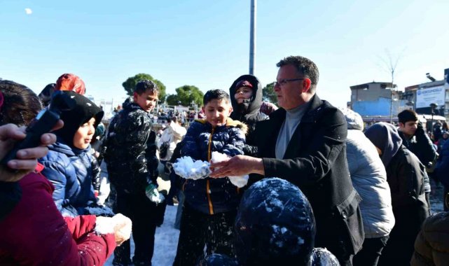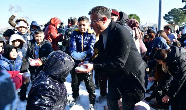 Kar yağmayan ilçede çocuklara kar sürprizi