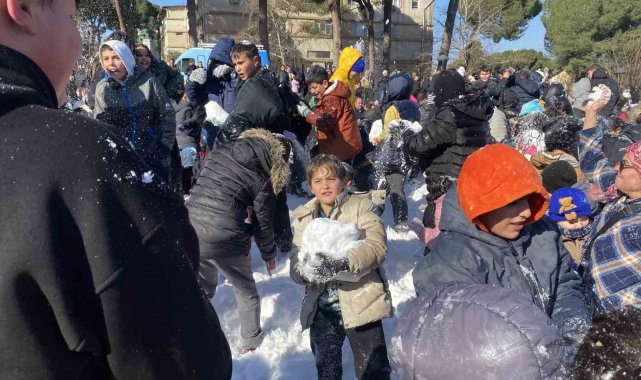 Manisa'nın Alaşehir ilçesinde yarıyıl tatiline giren çocuklar için belediye tarafından kar sürprizi yapıldı. İlçe merkezine uzun yıllardır kar yağmaması nedeniyle karla buluşamayan çocuklar, dağlık alandan getirilen karla doyasıya eğlendi.