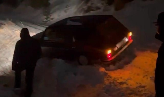 Kara saplanan otomobildeki 3 kişi kurtarıldı