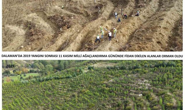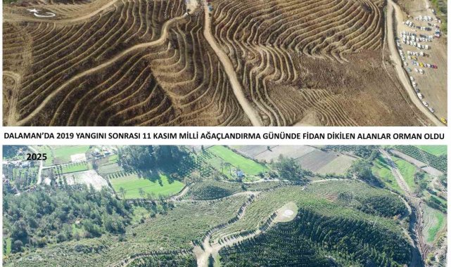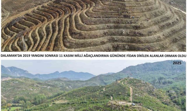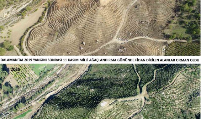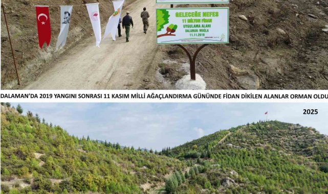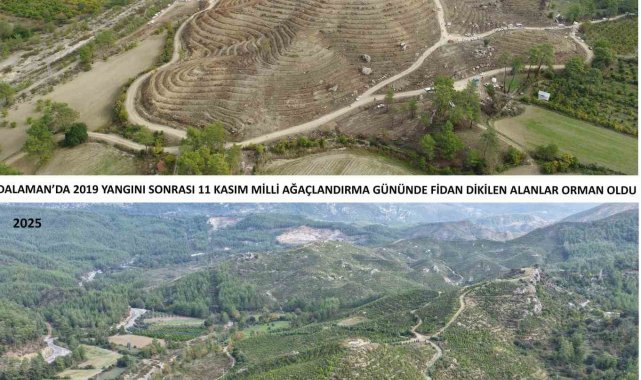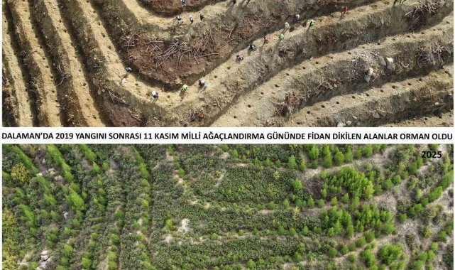Dalaman-Göcek yangınında yanan bin 433 hektar alanın tekrar ağaçlandırılması çalışmaları kapsamında yaklaşık 450 bin fidan dikildi ve alana yaklaşık 35 ton tohum atıldı. Dalaman'da 11 Kasım 2019'da dikilen fidanlar aradan geçen 6 yılda büyüdü ve yer yer 3 metreye bulan boylarıyla genç ağaçlara dönüştü.