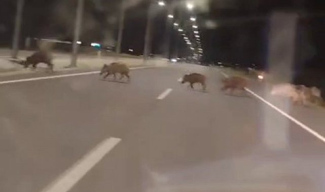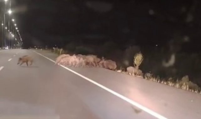 Kara yoluna çıkan yaban domuzları sürücülerin korkulu rüyası
