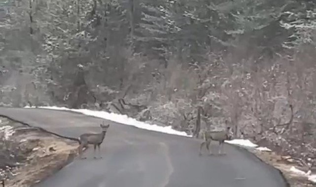 Karabük'ün Ovacık ilçesinde yola çıkan karacalar cep telefonu kamerasıyla görüntülendi.