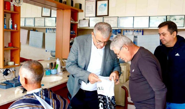 Karabiga Belediye Başkanı Ahmet Elbi, esnaf dostu belediye anlayışıyla beldedeki berber esnafını ziyaret ederek mesleki malzeme desteğinde bulundu.