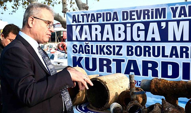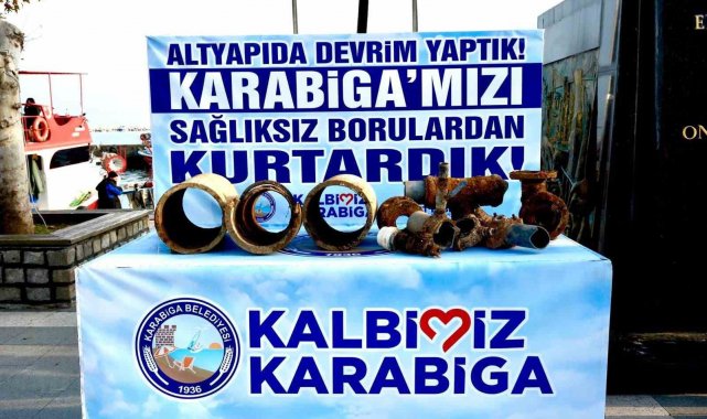 Karabiga Belediyesi, belde tarihinin en kapsamlı altyapı yenileme projesini tamamladı. Çalışmalar sırasında çıkarılan eski, çürümüş, küflenmiş ve kanserojen madde barındıran su boruları ise farkındalık oluşturmak amacıyla Karabiga Meydanı'nda sergilenmeye başlandı.