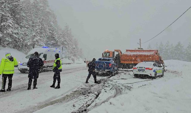 Karabük'te etkili olan kar yağışı sonrası Karabük-Bartın Karayolu yeniden ulaşıma kapatıldı.