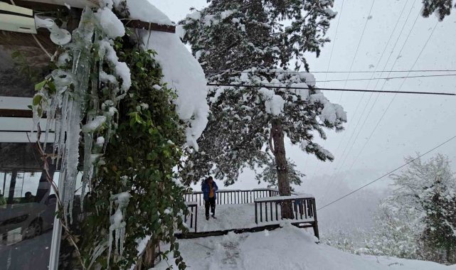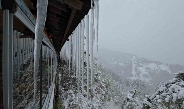 Öte yandan, yolda kalan ağır tonajlı bir tır ise traktör yardımı ile çekildi. Hava sıcaklığının sıfırın altında seyrettiği bölgede ise buz sarkıtları oluşması ise dikkat çekti.