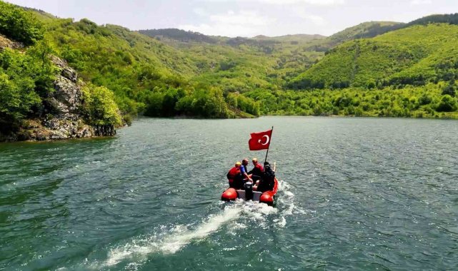 Karabük'te 19 Mayıs'a özel dalış: Gölette Türk Bayrağı'nı böyle dalgalandırdılar