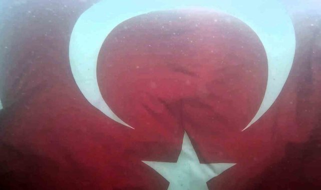 Etkinlik öncesi hazırlıklarını tamamlayan dalgıçlar, daha sonra şişme botla suya açılara 2.5 metre uzunluğundaki Türk bayrağını gölün hem derinliklerinde hem de yüzeyine dalgalandırdı.