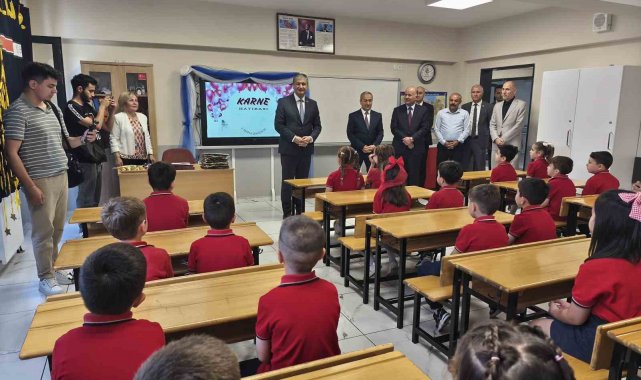 Sınıfları gezerek öğrencileri tebrik eden Vali Yavuz, tatilde yapılması gerekenler hakkında tavsiyelerde bulunduğu öğrencilere karnelerini dağıttı.