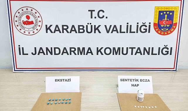 Karabük'te jandarma ekiplerince düzenlenen operasyonda 22 adet sentetik hap ele geçirildi.